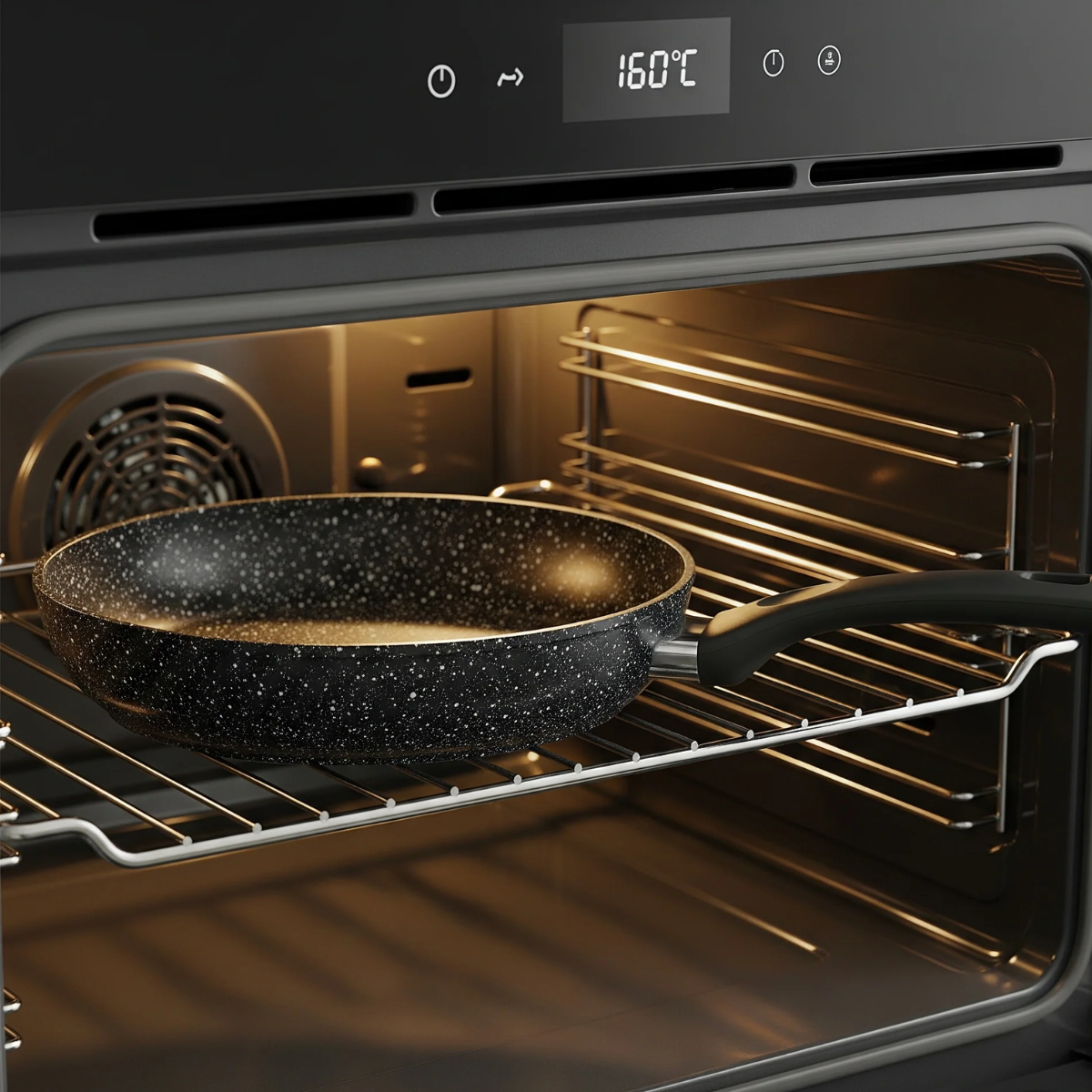 Het dikke aluminium verdeelt de warmte egaal, terwijl de magnetische bodem moeiteloos presteert op inductie, gas, keramisch, elektrisch en halogeen. Afwerken in de oven? Geen probleem tot 160 °C. Schoonmaken kost vaak niet meer dan een snelle spoeling, al kan hij natuurlijk ook gewoon in de vaatwasser.